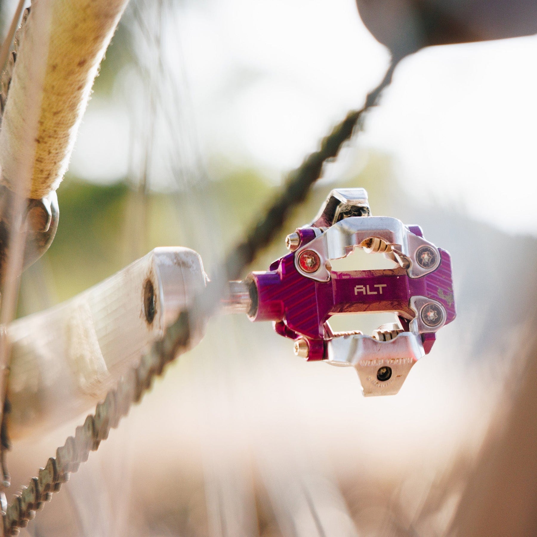 Wolf Tooth ALT XC Clipless Pedals are designed for commanding performance on trails and gravel roads. These pedals are simultaneously lighter and thinner than their Shimano, Hope, and HT counterparts, with an exceptionally low stack height, while also having more platform area for control and power transfer. This body design also features a more open center for better mud clearance than other clipless bike pedals. The SPD-compatible clip-in/out experience is quick and precise, with Wolf Tooth cleats included.
